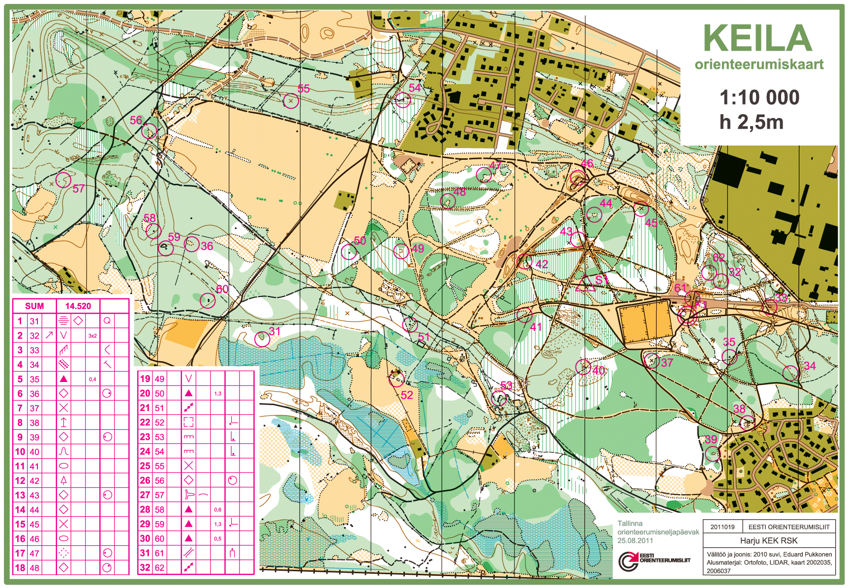 | 18 | 25. august | Keila | 2011019 | Eduard Pukkonen | Harju KEK | Valju Tali | 653 | Kaart | Tulemused | SI ajad | Graafik | Radade joonistamine | Foorum |